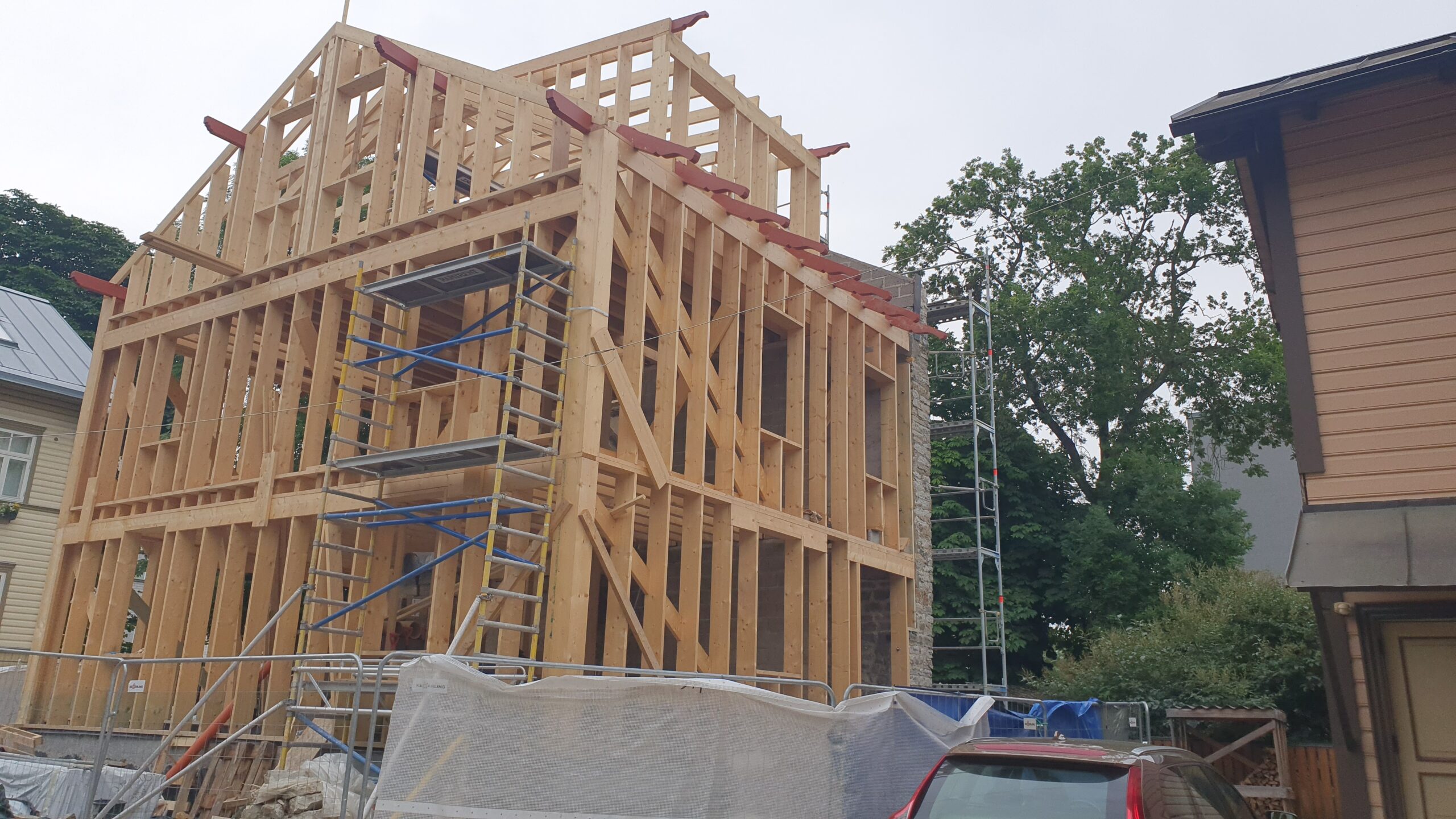 Kinnise majakarbi ehitus: nulltsükkel, karkass, fassaad, katus, soojustamine, avatäidete paigaldus ja tulemüüri renoveerimine.